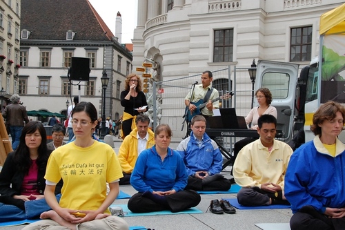 Im Rahmen unserer Möglichkeiten gaben wir uns auch diesmal wieder viel Mühe, auf die wahren Tatsachen hinzuweisen, die von den Medien der KPCh im eigenen Land und in den weltweit ausgestrahlten Medien verschwiegen oder bewusst verzerrt dargestellt werden. Beispielsweise hatte ein Herr in seinem Heimatland China nur Verleumdungen über Falun Gong gehört. Als er am Michaelerplatz lange Zeit den Erzählungen über die Geschichte der letzten 13 Jahre zuhörte und bei den Übungen zusah, hatte ich den Eindruck, dass ihm wirklich „die Augen aufgingen“.